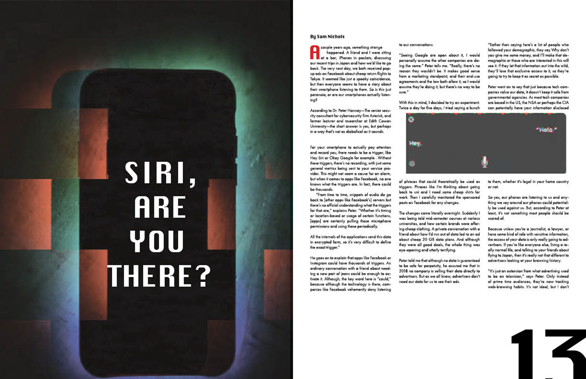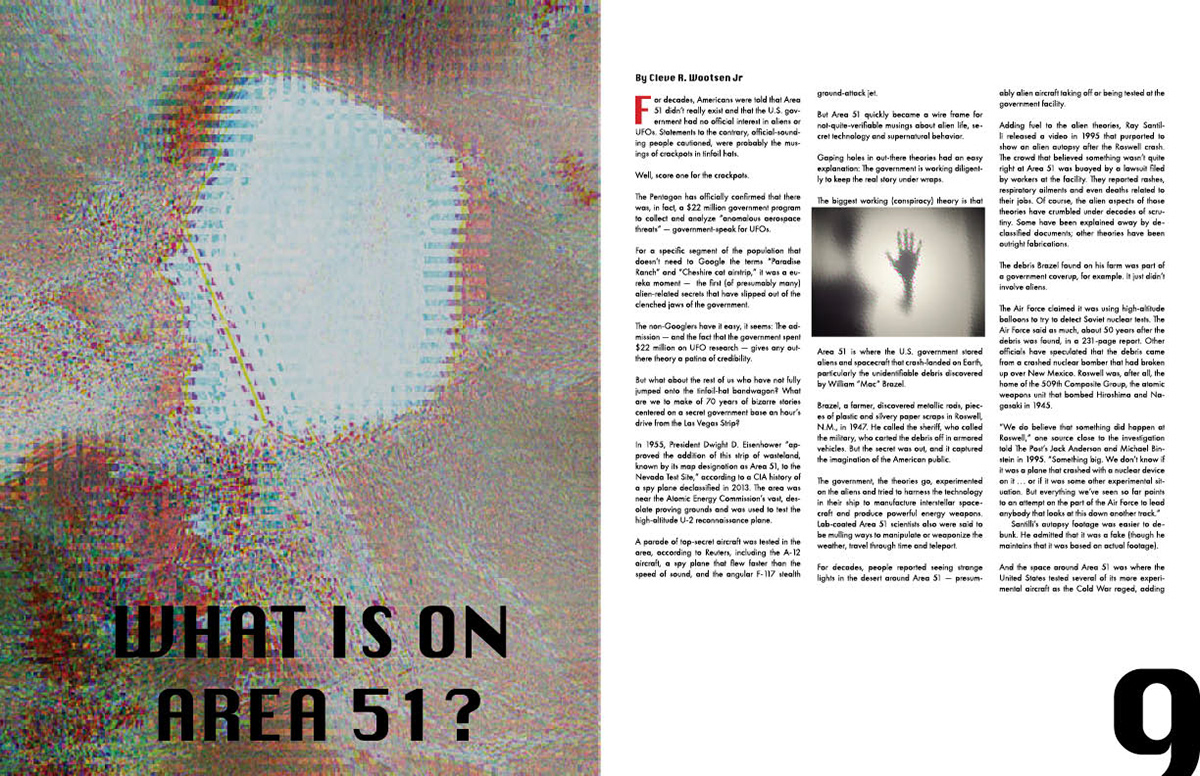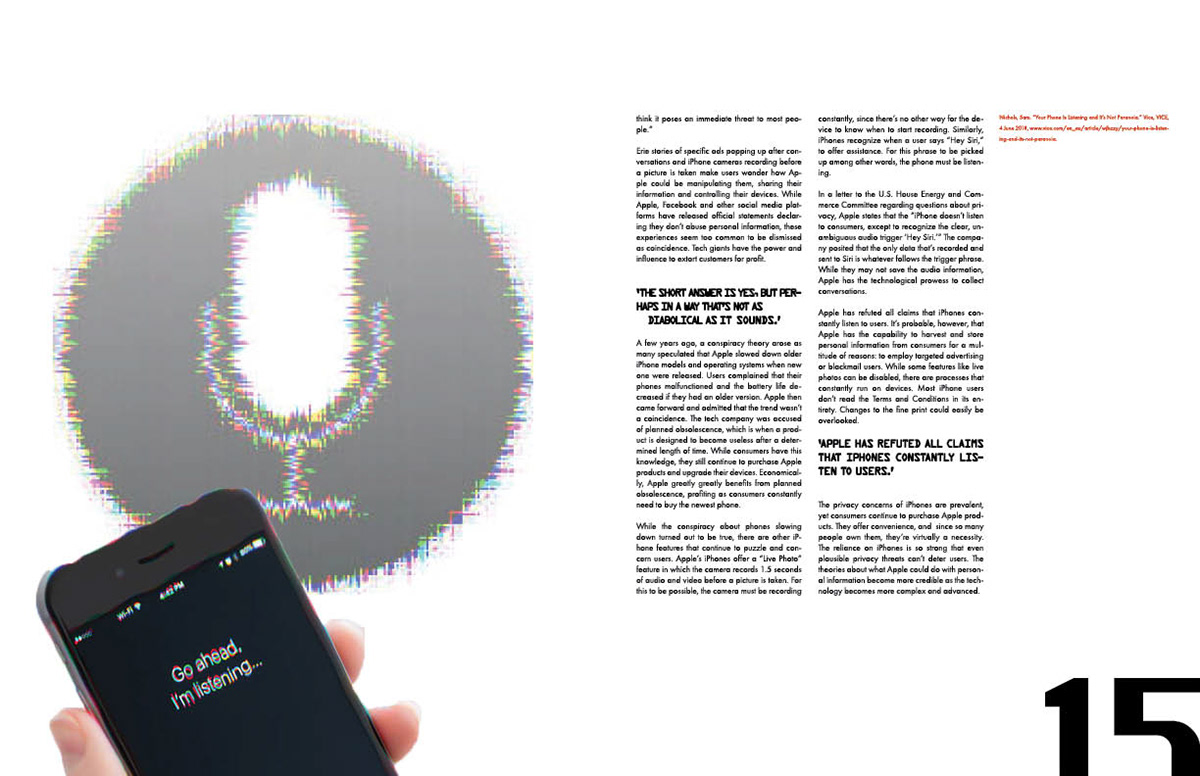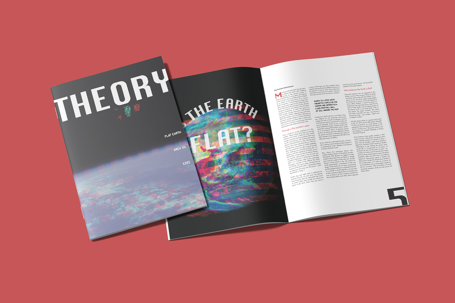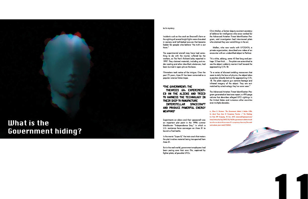 Theory Magazine is a publication I created. I maintained a sci-fi aesthetic through glitch photography and futuristic fonts that would compliment the content discussed.